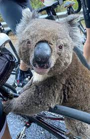 Then, along the road, came the sound of tires against gravel—a lone cyclist on his journey. What happened next was not planned, but written in the quiet language of compassion. The koala, trembling and desperate, reached up and clung to the rider’s bicycle, refusing to let go. It was not just a plea for water—it was a plea for life. 💔