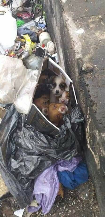 On a rainy afternoon in 2018, the world seemed colder than ever for six tiny lives. Hidden inside a soaked cardboard box at the edge of a garbage pile, faint whimpers barely rose above the sound of falling rain. π§οΈπΆ Their tiny bodies were trembling, ribs pressing against their wet fur, stomachs empty from days without food. Someone had thrown them away as if they were nothing more than trash. π