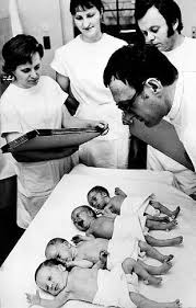 In 1968, at a hospital in the United States, nurse Vera Leonard modeled an invention that stunned the world: an apron fitted with six large pockets โ each designed to hold a baby. The purpose was as practical as it was daring: to evacuate newborns quickly in case of a hospital fire ๐๐ฅ.