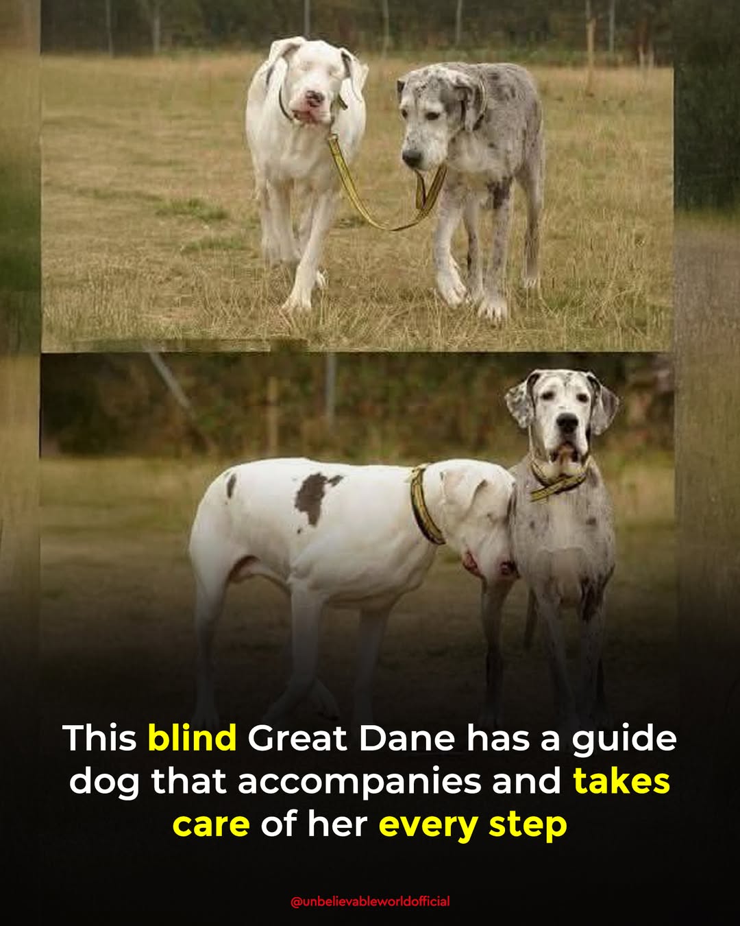Lily, a gentle Great Dane, once lived in darkness and pain. A severe eye condition forced her to lose both eyes, leaving her blind and vulnerable π’ποΈ. But life gave her something even greater than sight β it gave her Maddison, another Great Dane who became her guide, her protector, and her shadow of love. πΆβ€οΈ
