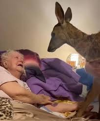 When Bambi stepped into the room, Lisa’s mother’s eyes lit up. She whispered, “Oh my goodness… is that really Bambi?” The fawn nuzzled her gently, and her smile bloomed—pure joy for the first time in months.