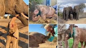 A tiny miracle arrived in 2020 — a four-month-old albino elephant calf named Khanyisa. She had been found with a poacher’s snare wrapped around her head, cutting so deeply it nearly blinded her. Alone, bleeding, and weak, no one was sure if she would survive her first night.