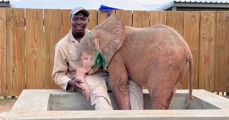 A tiny miracle arrived in 2020 — a four-month-old albino elephant calf named Khanyisa. She had been found with a poacher’s snare wrapped around her head, cutting so deeply it nearly blinded her. Alone, bleeding, and weak, no one was sure if she would survive her first night.