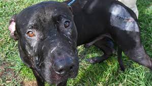 This is a bait dog! He is safe now, but Look close, look at the defeat in this baby’s eyes, look at the scars and imagine what this dog went through.