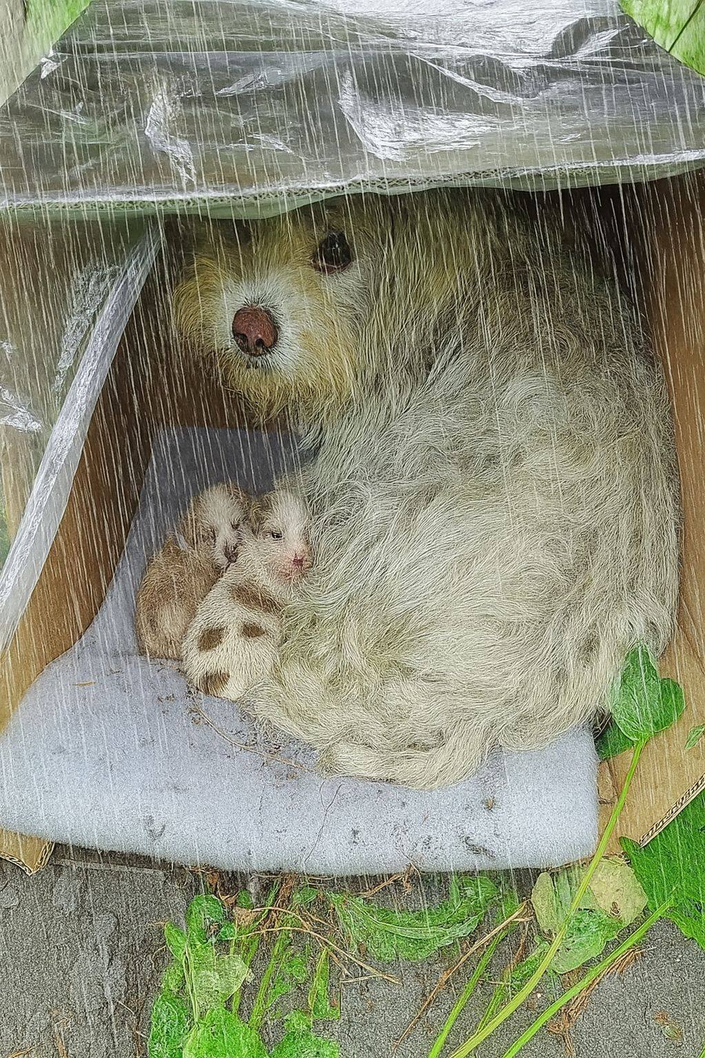 So I knelt down, lifted the box carefully, and carried them home. The mother dog didnโt resist โ she looked at me with a mix of exhaustion and trust, as if she understood that help had finally arrived. ๐ฏ๏ธ๐
