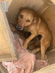 I was on my way home when I noticed a small, torn cardboard box tucked by the roadside. Inside, a skinny mother dog curled her fragile body around her newborn puppies, trying to shield them from the world. ๐ Her ribs showed through her fur, her eyes were tired yet pleading โ silently asking for help she could no longer give on her own.