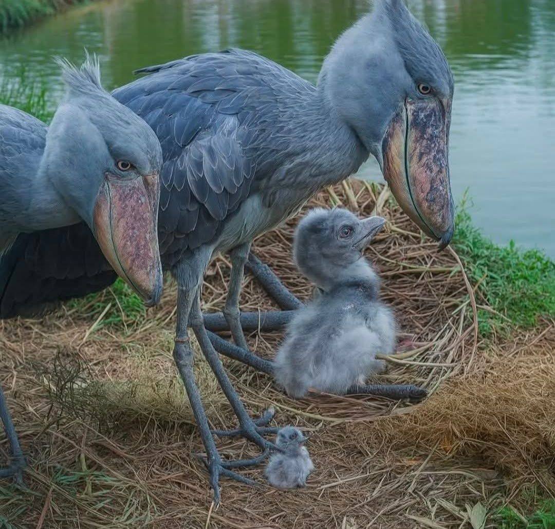 In the hidden heart of the wetlands 🌊🌿, where time seems to move slower and the air hums with ancient whispers 🌌✨, lives one of nature’s rarest families: a pair of shoebill storks. Towering as tall as statues ⛩️, still as guardians, they carry themselves with a grace that feels prehistoric ⏳🦤.