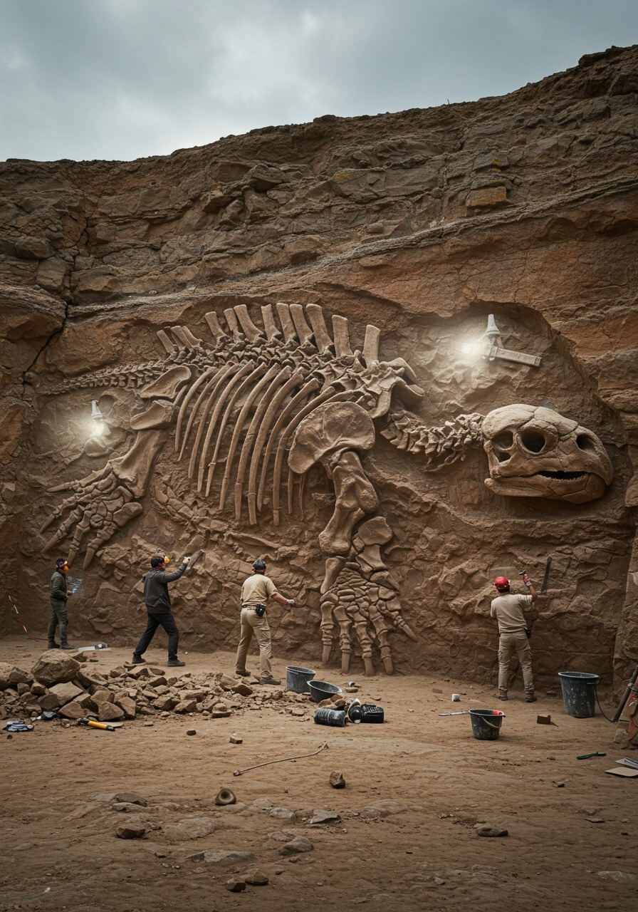 A spectacular and completely unexpected paleontological find is creating a MEGABEAST MARVEL in the world of science. What was originally thought to be an ordinary slab of stone in a quarry has been identified as a perfectly preserved, GIANT FOSSILIZED CREATURE UNEARTHED IN ROCK WALL, an amphibian of colossal size that lived before the age of the dinosaurs.