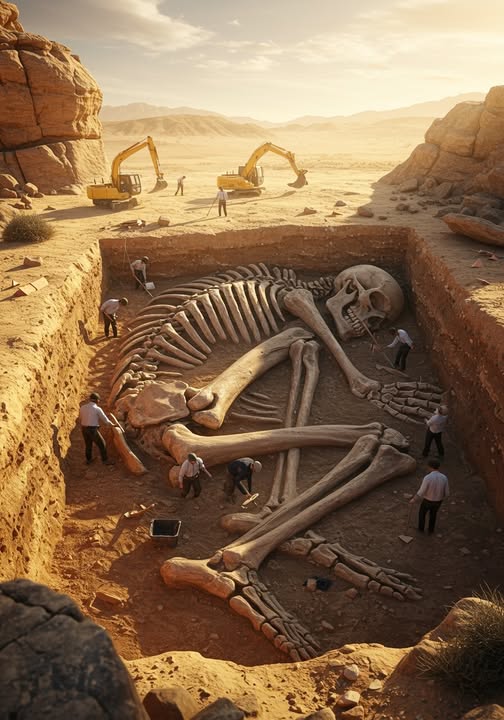 The remains, found deep beneath layers of desert sediment, have been provisionally dubbed the “Desert Colossus.” While mainstream science has long dismissed global myths about a race of giants as mere folklore or misidentified animal fossils, the morphology of this new discovery is strikingly human, yet monumental in scale. The archaeological team insists on transparency, releasing high-resolution images of the desert excavation site. The sheer size of the femur and skull fragments has led to speculation that the individual was part of a previously unknown hominid species or an extremely rare case of severe gigantism within an ancient population. This groundbreaking archaeological find promises to be one of the most talked-about events of the decade.