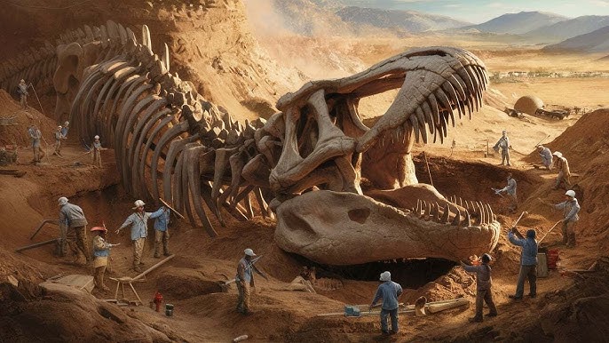 A sensational discovery in a remote canyon has sparked global astonishment, revealing not just the fossilized remains of a colossal prehistoric predator, but an unnervingly detailed carving of the same creature etched into the adjacent rock face. Paleontologists have confirmed that the immense bones—suggesting an apex carnivore larger than any known terrestrial dinosaur—are genuine, dating back millions of years. However, the presence of the giant predator carving has ignited fierce debate. Is it a stunning coincidence of nature, or a profound archaeological mystery left by an unknown ancient civilization that somehow witnessed, or even lived alongside, this magnificent beast?