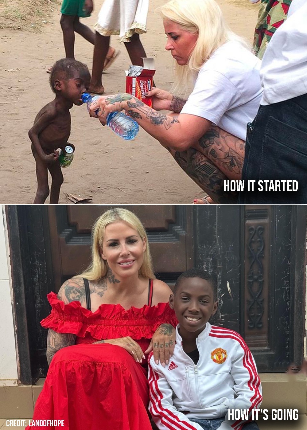 But then came a moment that changed everything. A Danish aid worker, Anja Ringgren Lovén, knelt beside him. With a bottle of water and a small packet of food 💧🍫, she gave him more than just relief from hunger — she gave him dignity, humanity, and a reason to keep fighting. That simple act of compassion marked the beginning of a miracle.