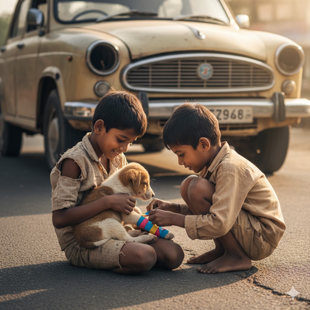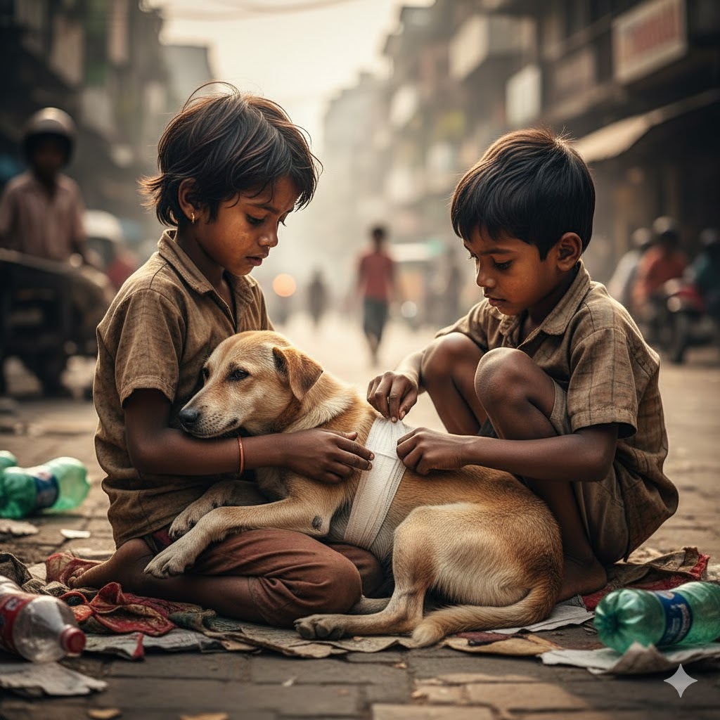 In the crowded streets of India ๐ฎ๐ณ, where the air hums with horns and the scent of dust and dreams, two homeless children wander โ barefoot, hungry, and unseen. ๐