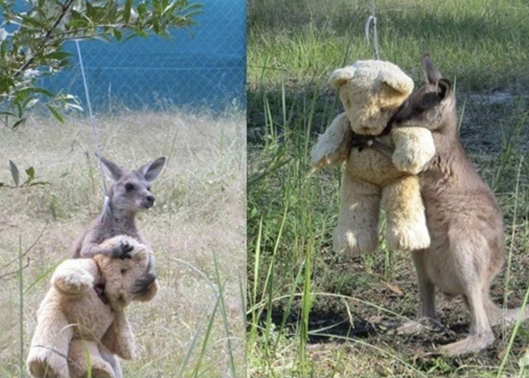 They placed it beside him, not expecting much. But the joey looked at it, tilted his head, and then β as if recognizing something familiar β wrapped his little arms around it. Slowly, he pressed his face into the bearβs soft fur and closed his eyes.