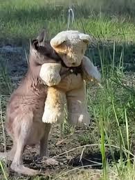 They placed it beside him, not expecting much. But the joey looked at it, tilted his head, and then β as if recognizing something familiar β wrapped his little arms around it. Slowly, he pressed his face into the bearβs soft fur and closed his eyes.