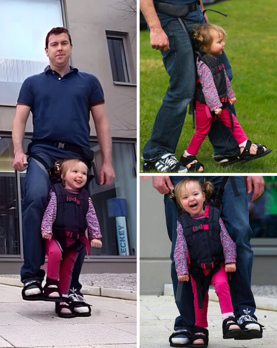 He took an old pair of sneakers ๐, some fabric straps, and endless determination โ and began to build. What emerged was extraordinary: a harness system that connected his daughterโs feet to his own, with an extra sole designed just for her. ๐ฆถ๐๏ธ