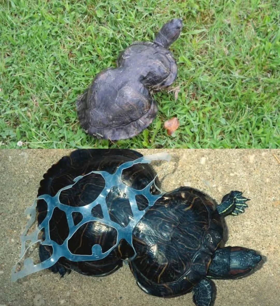 It wrapped around her body when she was small, harmless-looking at first. But as she grew, the plastic did not. It tightened, squeezing her shell inch by inch until it twisted into a painful hourglass shape β€” her ribs and organs compressed beneath the relentless pressure. 😒