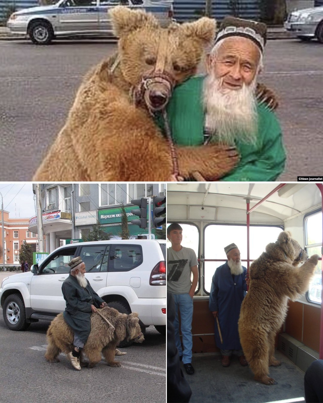 From that day forward, Maria was no wild creature โ she was family. She grew up alongside Sheikhovโs 13 children, learning to walk, play, and even share meals with them. She followed Sheikhov wherever he went โ through fields, across villages, up winding paths of the mountain. In the city of Dushanbe, people would stop and stare in awe at the sight of an old man walking side by side with a massive brown bear, their steps perfectly in sync. ๐โจ