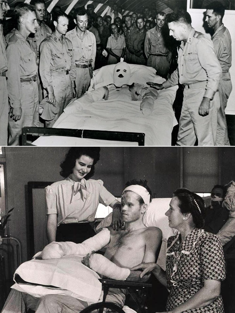 It was April 12, 1945, near the end of World War II. Inside a B-29 Superfortress soaring over the Pacific, Staff Sergeant Henry Erwin was performing his duty โ loading phosphorus bombs to mark targets for air strikes. But in one terrible instant, everything went wrong. A white phosphorus bomb malfunctioned, exploded prematurely, and filled the plane with blinding smoke and unbearable fire. ๐ฅ The bomb struck Erwin in the face, burning through his flesh and instantly blinding him.