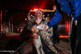 Then, through the smoke, one firefighter appeared — holding something small and still. Gordo.