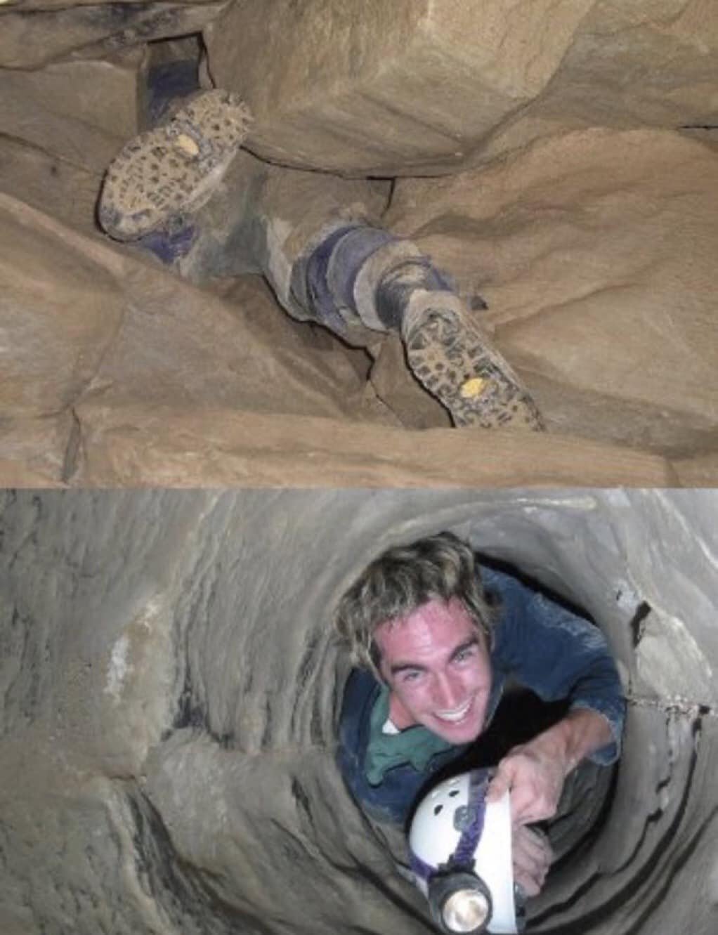Deep underground, John mistakenly entered a narrow passageway he believed was the familiar βBirth Canal,β a section he had crawled through before. But this one was different β a dead-end only 10×18 inches wide, tighter than any space a human body was meant to fit through. As he slid headfirst into the crevice, the rock walls gripped him like iron. He tried to back out, but gravity pulled him deeper β until he was completely stuck, upside down, his arms pinned, his body twisted painfully against the stone. π