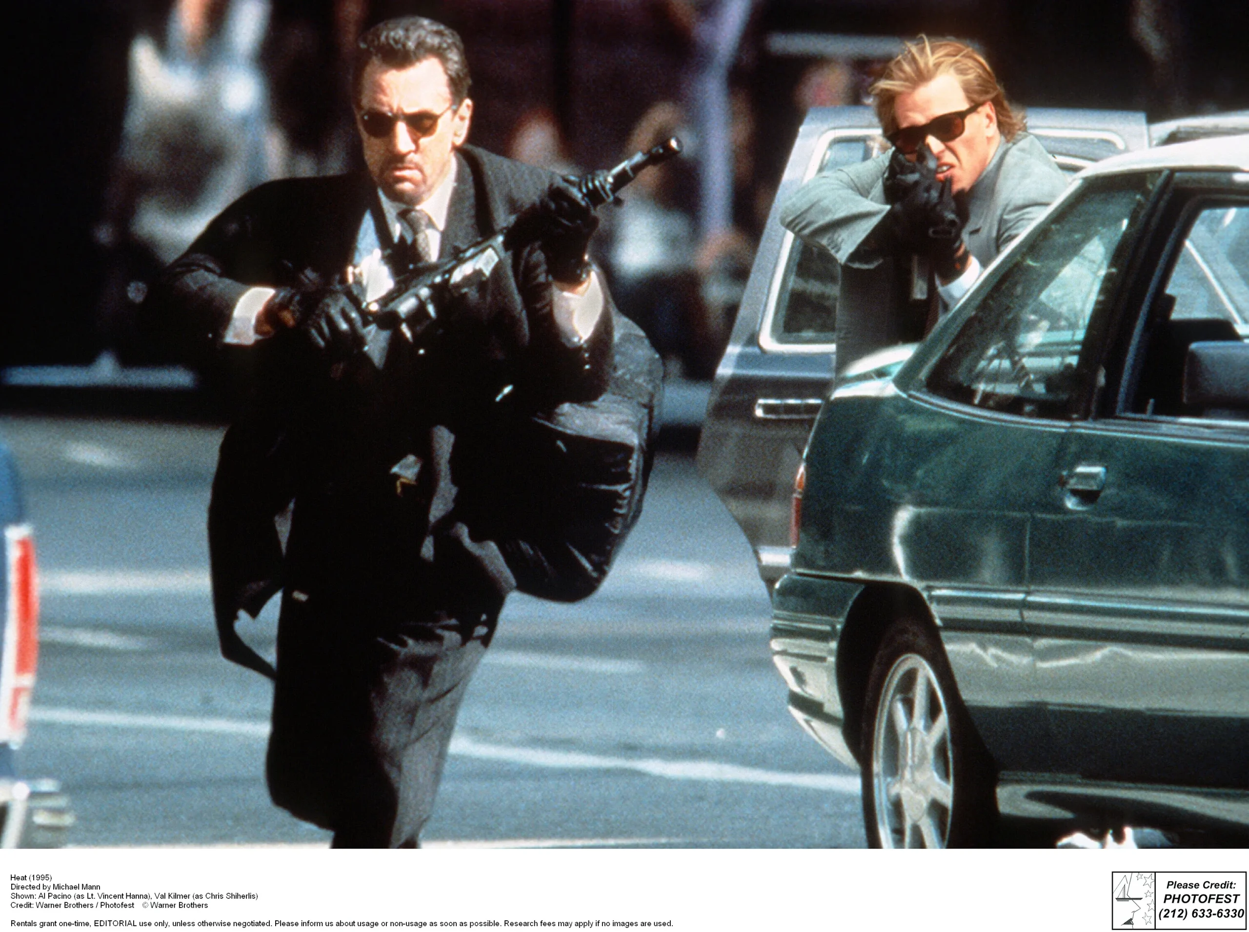 Pacino’s Hanna is a live wire, all manic energy and shouted conviction, while De Niro’s McCauley is ice-cold precision, his every glance a study in disciplined menace. Their shared coffee-shop moment is electric—two titans trading truths, their mutual respect a heartbeat in the chaos. Mann’s direction is a masterclass: the downtown shootout roars like a war zone, every bullet echoing with purpose, while the synth-driven score pulses like the city’s veins. From heist choreography to human stakes—love, loyalty, betrayal—Heat is a gripping blend of action and soul. If you crave crime drama that hits like a .45, this is essential viewing.