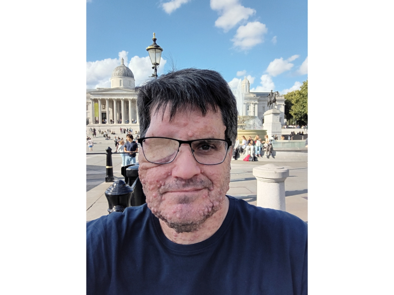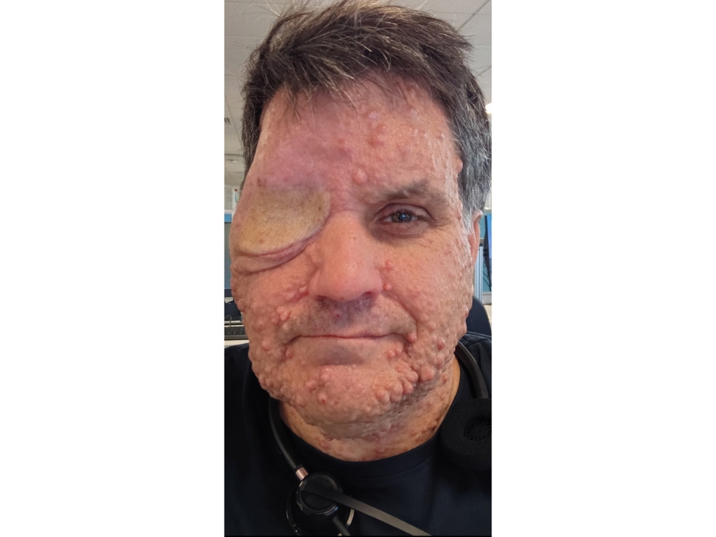 At 42 years old, Oliver Bromley has lived a life defined not by his illness, but by his extraordinary courage in the face of it. Born with neurofibromatosis, a rare genetic disorder that causes tumors to grow along his nerves, he has spent decades watching his reflection change — and watching the world’s reaction change with it. 💭