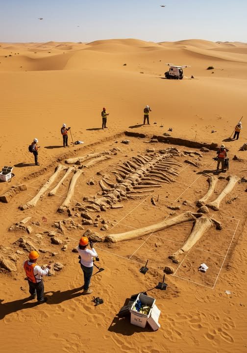 A stunning archaeological excavation has delivered a COLOSSAL SHOCK to the scientific community: the discovery of a massive, near-complete Giant Skeleton buried deep within the shifting Desert Sands. The sheer scale of the remains suggests a hominid species of extraordinary size, far exceeding any known human ancestor. Initial measurements indicate a height of over ten feet, triggering intense global speculation. Archaeologists are scrambling to secure the sensitive site, fearing the rapid degradation of the bones in the harsh environment. This unprecedented find threatens to completely rewrite the timeline of human evolution and validate centuries of “giant” folklore.
