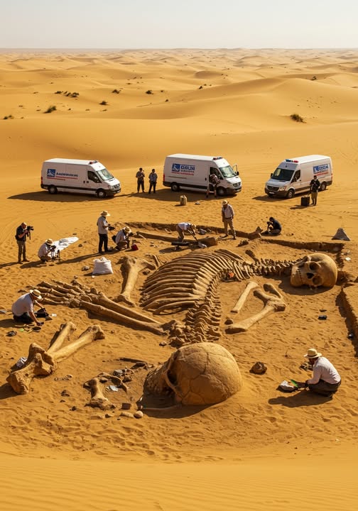 A stunning archaeological excavation has delivered a COLOSSAL SHOCK to the scientific community: the discovery of a massive, near-complete Giant Skeleton buried deep within the shifting Desert Sands. The sheer scale of the remains suggests a hominid species of extraordinary size, far exceeding any known human ancestor. Initial measurements indicate a height of over ten feet, triggering intense global speculation. Archaeologists are scrambling to secure the sensitive site, fearing the rapid degradation of the bones in the harsh environment. This unprecedented find threatens to completely rewrite the timeline of human evolution and validate centuries of “giant” folklore.