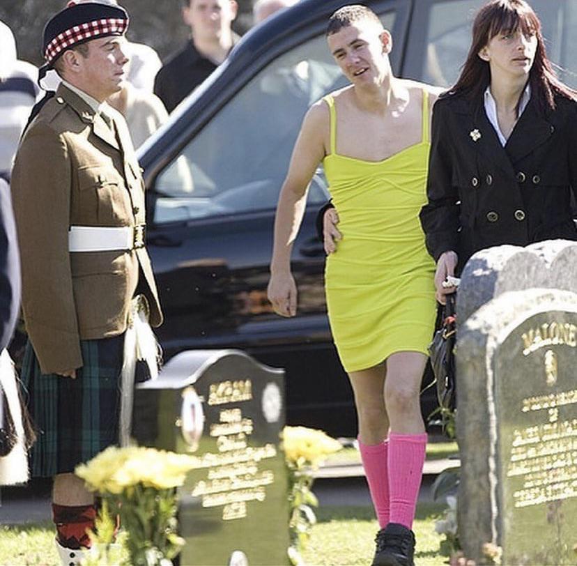 It began, as the best things often do, with laughter. Years before the war, Kevin Elliott and Barry Delaney, two inseparable friends from Dundee, Scotland, made a promise over pints and jokes β a promise that seemed lighthearted at the time. If one of them ever didnβt make it home from Afghanistan, the other would come to the funeral wearing the most ridiculous outfit imaginable β a bright neon dress and pink stockings. ππ