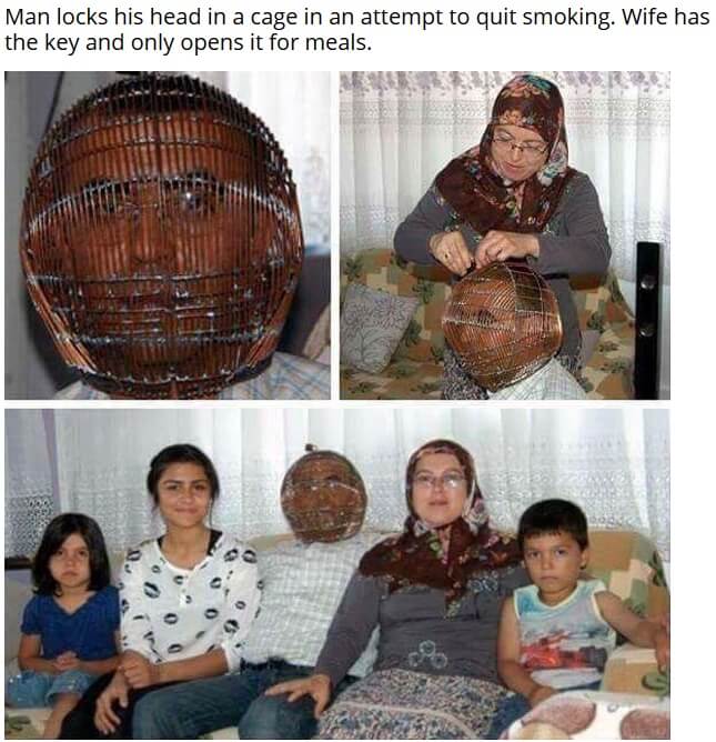 But he knew his willpower alone wasn’t enough. So he did something no one had ever dared to do — he built a metal cage out of wire, shaped like a helmet, and locked his own head inside it. 🔒🪖