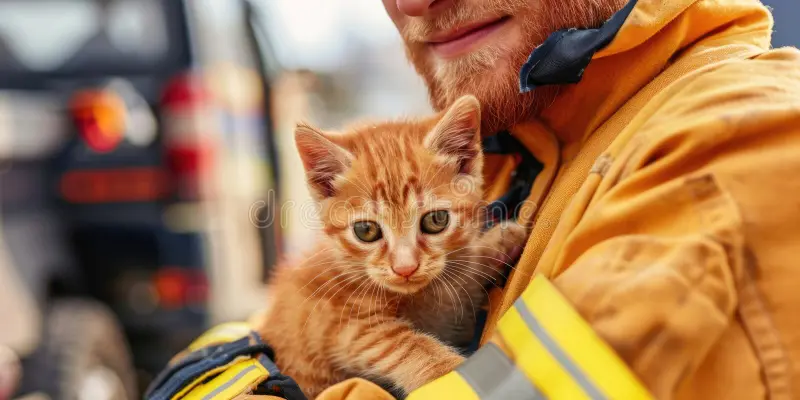 He pushed through smoke and debris until he found her β a small, soot-covered cat trembling beneath a broken cabinet. Without a second thought, he pulled her free, tucking her into his chest as he made his way through the inferno.