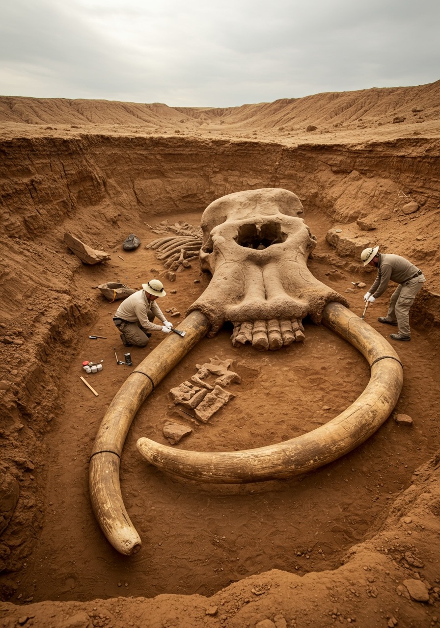BREAKING NEWS: Colossal Mammoth Skull Discovered in Desert Basin