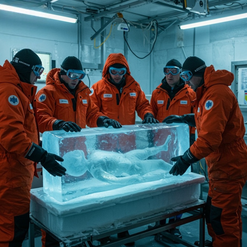 In a BREAKING DISCOVERY that has immediately halted all scientific operations, climate researchers in the SOUTHERN OCEAN have made a TERRIFYING, MONUMENTAL FIND near a rapidly collapsing ice shelf. As ancient ice gave way due to rising temperatures, a perfectly preserved FROZEN HUMANOID figure was revealed. This is not a modern body, but a monumental, near-mythical figure encased in a blue glacial coffin. Initial spectral analysis suggests the figure’s morphology is highly unusual, with skeletal and facial structures that do not match any known human or hominid species. The discovery of the FROZEN HUMANOID is poised to trigger a global scientific mobilization, raising immediate questions about the history of life on Earth.