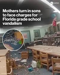 were turned in by their own mothers Monday to face charges for allegedly causing $50,000 worth of vandalism damage to an elementary school library in Volusia County, Florida, according to the local sheriff’s office.