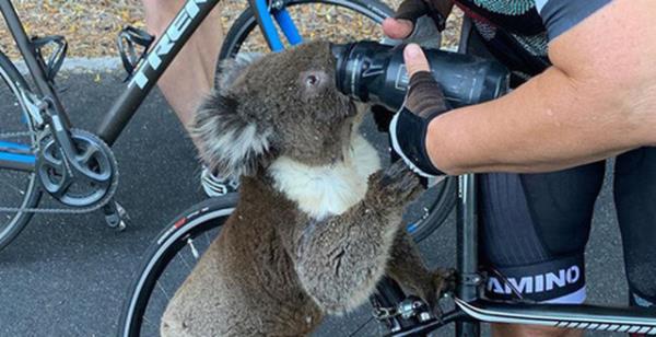 Then, along the road, came the sound of tires against gravel—a lone cyclist on his journey. What happened next was not planned, but written in the quiet language of compassion. The koala, trembling and desperate, reached up and clung to the rider’s bicycle, refusing to let go. It was not just a plea for water—it was a plea for life. 💔
