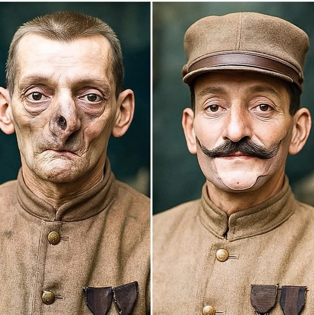 During the dark years of World War I ⚔️, countless soldiers returned home with shattered faces 😔🥀. The battlefield left them with scars so severe that many hid away from the world 🥶😭, ashamed of their reflection, robbed of their identity.